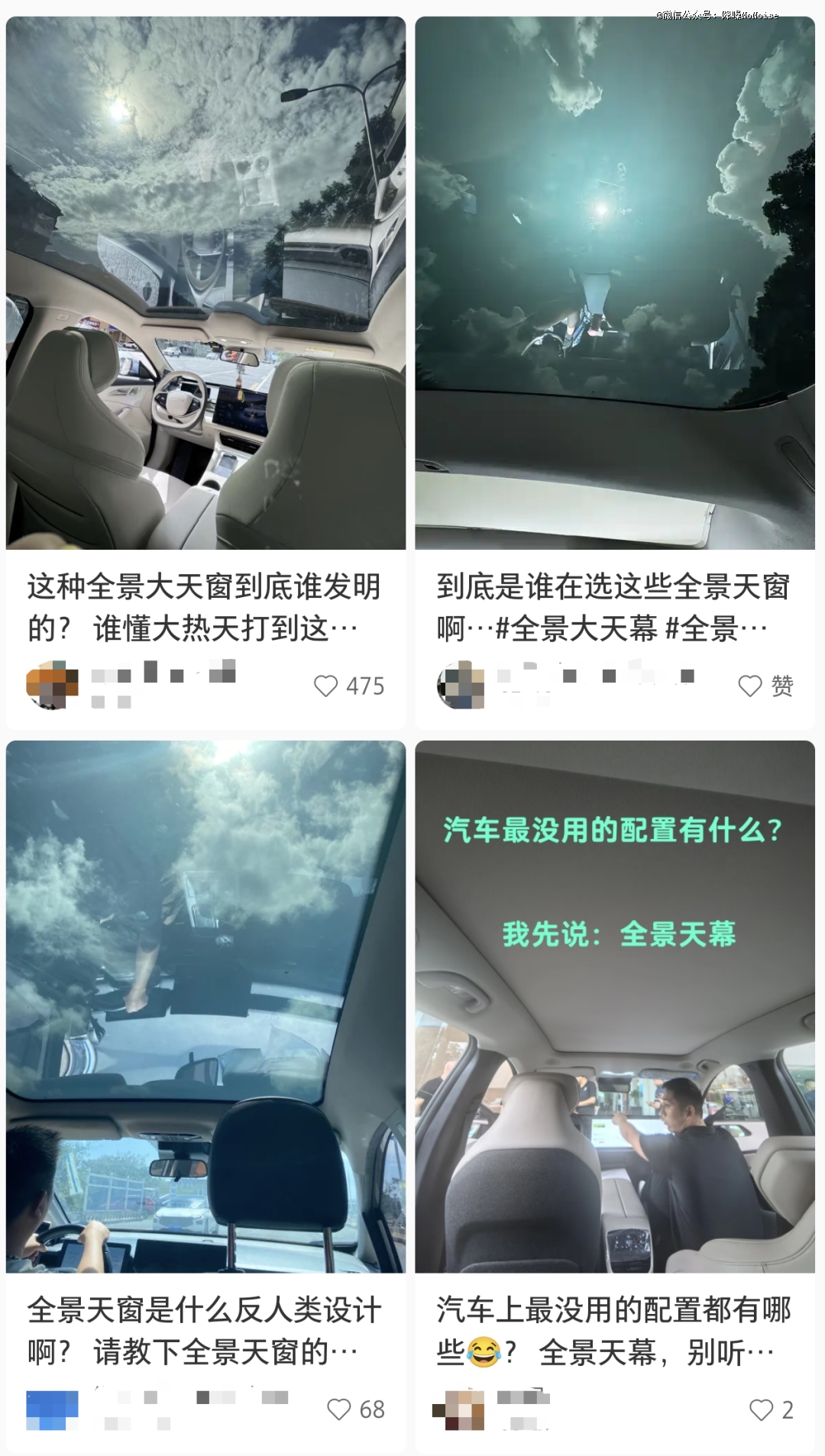 ▲社交网络上对全景天幕设计的集体吐槽