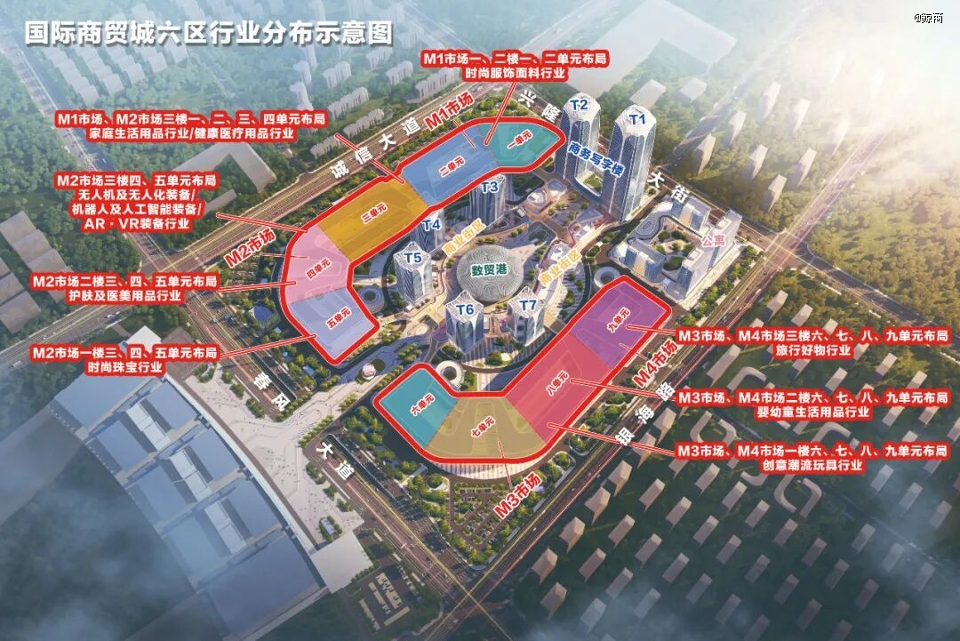 如果说店铺的升级是点的革新,六区市场的整体规划是面的融合。六区首次把市场、商务写字楼、公寓、商业街区、数贸港五大板块整合在一起,形成了一个综合生态体。