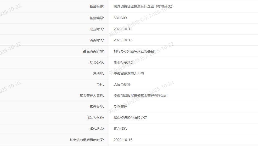 10月22日消息,近日,无为市科创子基金“芜湖创谷创业投资合伙企业(有限合伙)”正式在中国证券投资基金业协会完成备案。此次科创子基金的成功落地,是无为市深化金融支持创新体系、加速现代化产业布局的重要举措,标志着无为经开区母子基金体系建设迈出实质性一步。