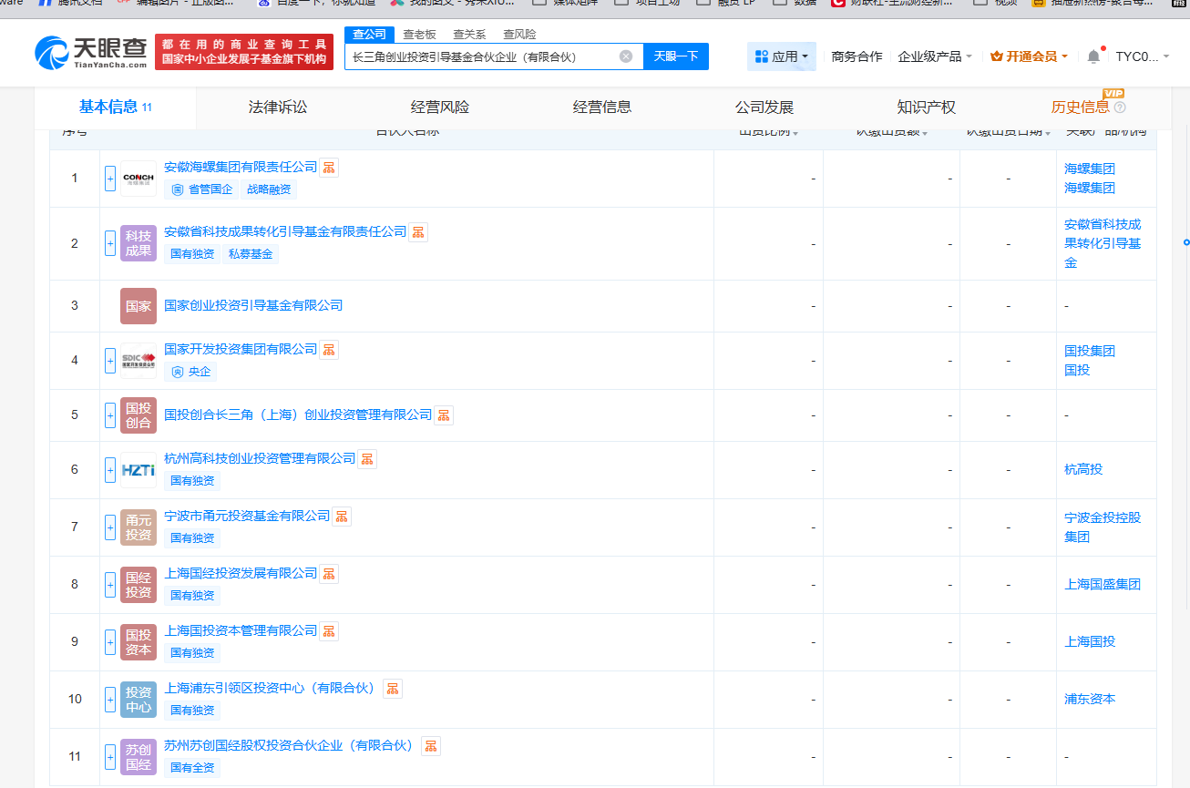 注册规模471亿元的“长三角创投引导基金”(全称“长三角创业投资引导基金合伙企业(有限合伙)”),基金执行事务合伙人为新近成立的“国投创合长三角(上海)创业投资管理有限公司”,基金合伙人包括“国家创业投资引导基金”,央企“国投集团”,以及安徽省、浙江省(杭州市、宁波市)、上海市、(江苏省)苏州市多级国资、国企。